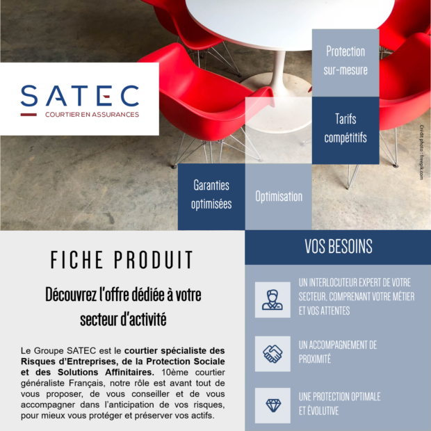 Conscient qu’un imprévu peut impacter significativement votre trésorerie, Satec, courtier leader sur le segment CHR avec plus de 40 ans d’expérience, accompagne +2.000 établissements en négociant les solutions d’assurances les plus compétitives du marché. Composé de 10 experts, le Groupe propose des solutions sur-mesure, modulables selon vos besoins.